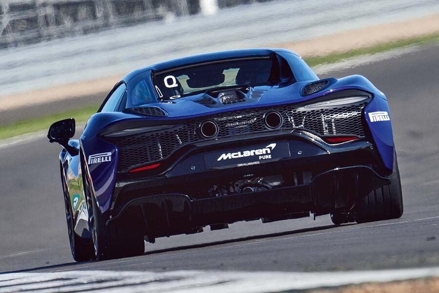 The key, she says, is to relax, look ahead, don’t overthink and don’t be rash – that’s how mistakes happen. Edwards also gives me the go-ahead to left-foot brake – something the Artura’s set-up has been designed to promote, an engineer tells me later. I keep the gearbox in Auto.