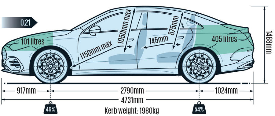 While some other manufacturers are slowly revising their touchscreen-dominant strategies, Mercedes is ploughing on full steam ahead. As on other Mercedes, the approach is at least relatively cohesive. The startlingly vertical fascia and relatively short dashboard are unusual and call forth a 1950s vision of the future. Our test car didn’t have the Superscreen, which replaces the field of stars in front of the passenger with an additional touchscreen, but based on our experience of such systems we wouldn’t bother with the extra £1350 required to step up to AMG Line Premium Edition+.