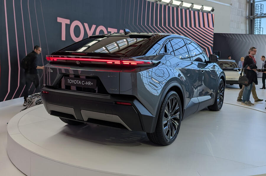 The C-HR+ can be had with front-wheel drive or, exclusively with the 77kWh pack, all-wheel drive. Power levels begin at 165bhp, rise to 221bhp and top out at 338bhp in dual-motor, all-wheel-drive form. This beats the standard 3.0-litre six-pot GR Supra by 3bhp.