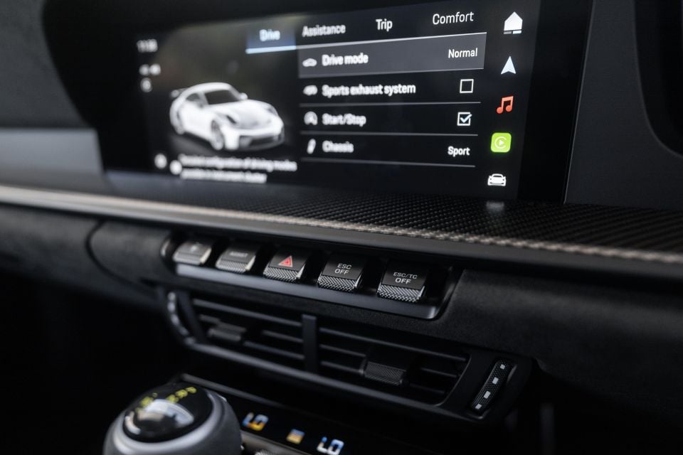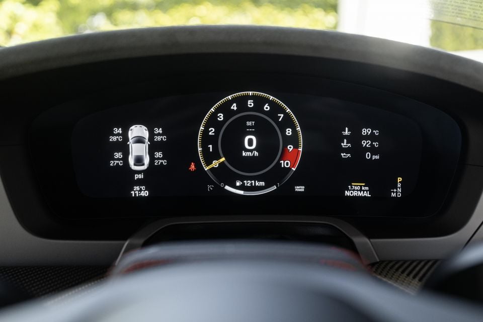 The 911’s iconic analogue central tachometer is gone, replaced by a 12.6-inch fully digital instrument cluster.