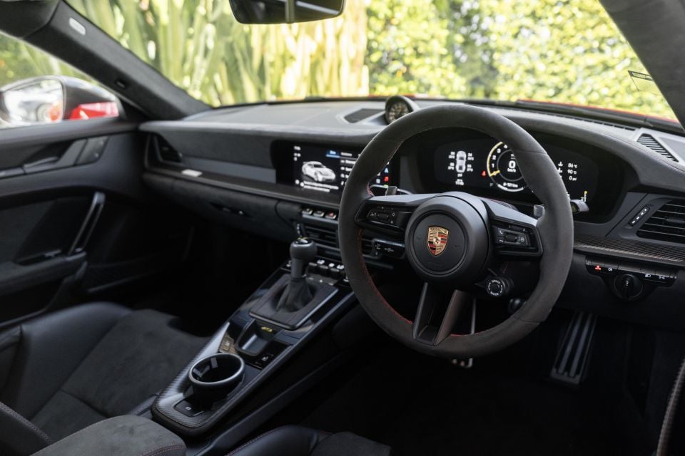 Australia gets both gearbox options: the six-speed manual and seven-speed PDK dual-clutch automatic, each calibrated specifically for the GT3’s high-revving personality.