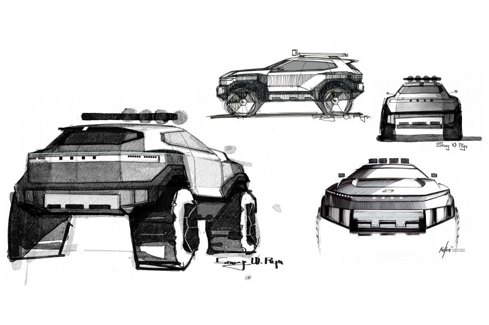 The hardcore Hyundai Crater concept has been teased in sketch form ahead of its world debut at AutoMobility LA 2025 in Los Angeles this Thursday (4:45am AEDT on November 21).